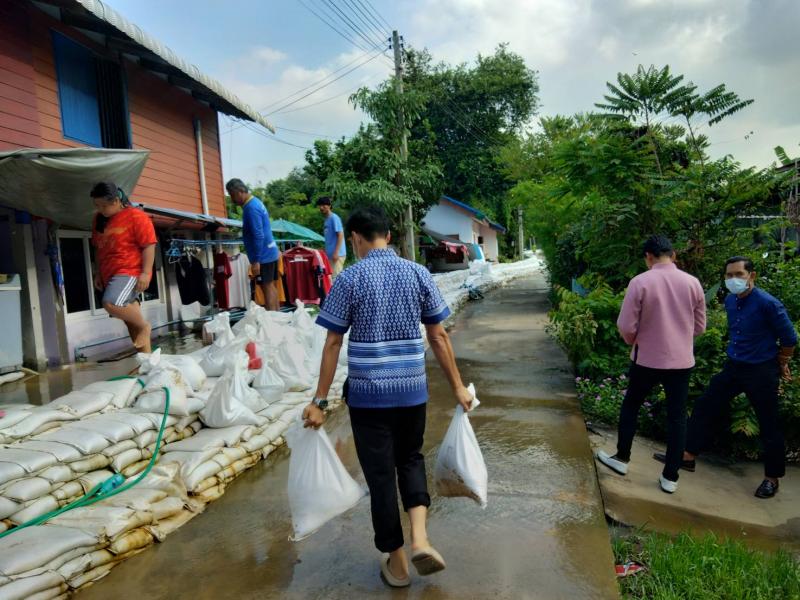 นายศรีธรรม ราชแก้ว นายอำเภอเมืองสุพรรณบุรี พร้อมคณะ ลงพื้นที่เยี่ยมผู้ป่วยติดเตียงที่ประสบอุทกภัยน้ำท่วม