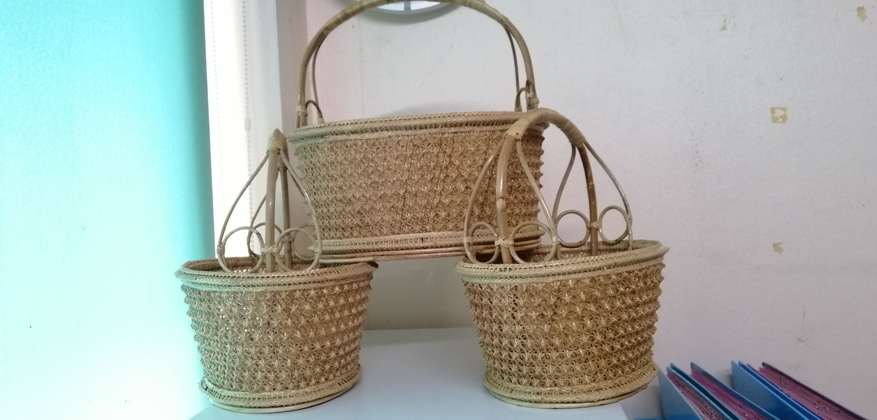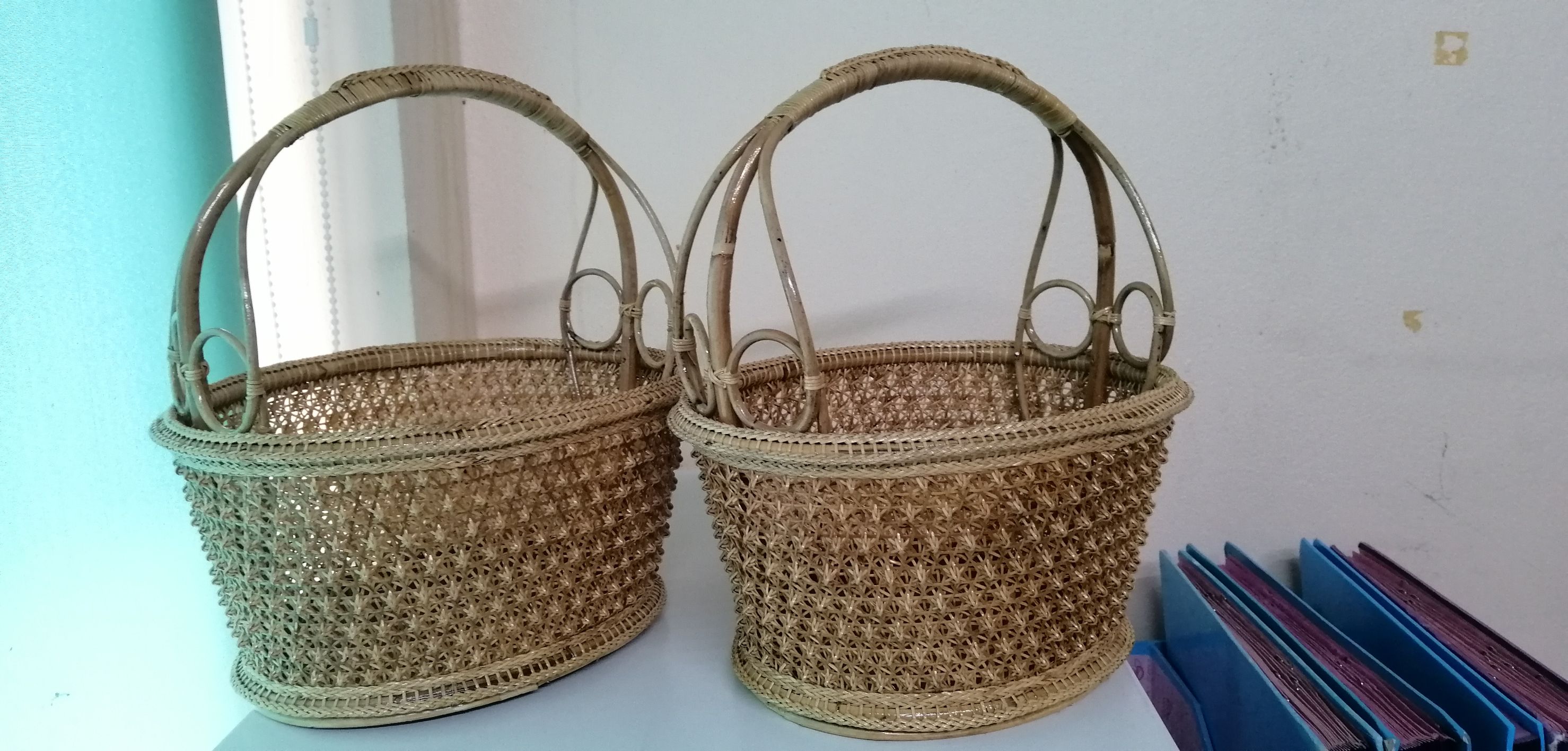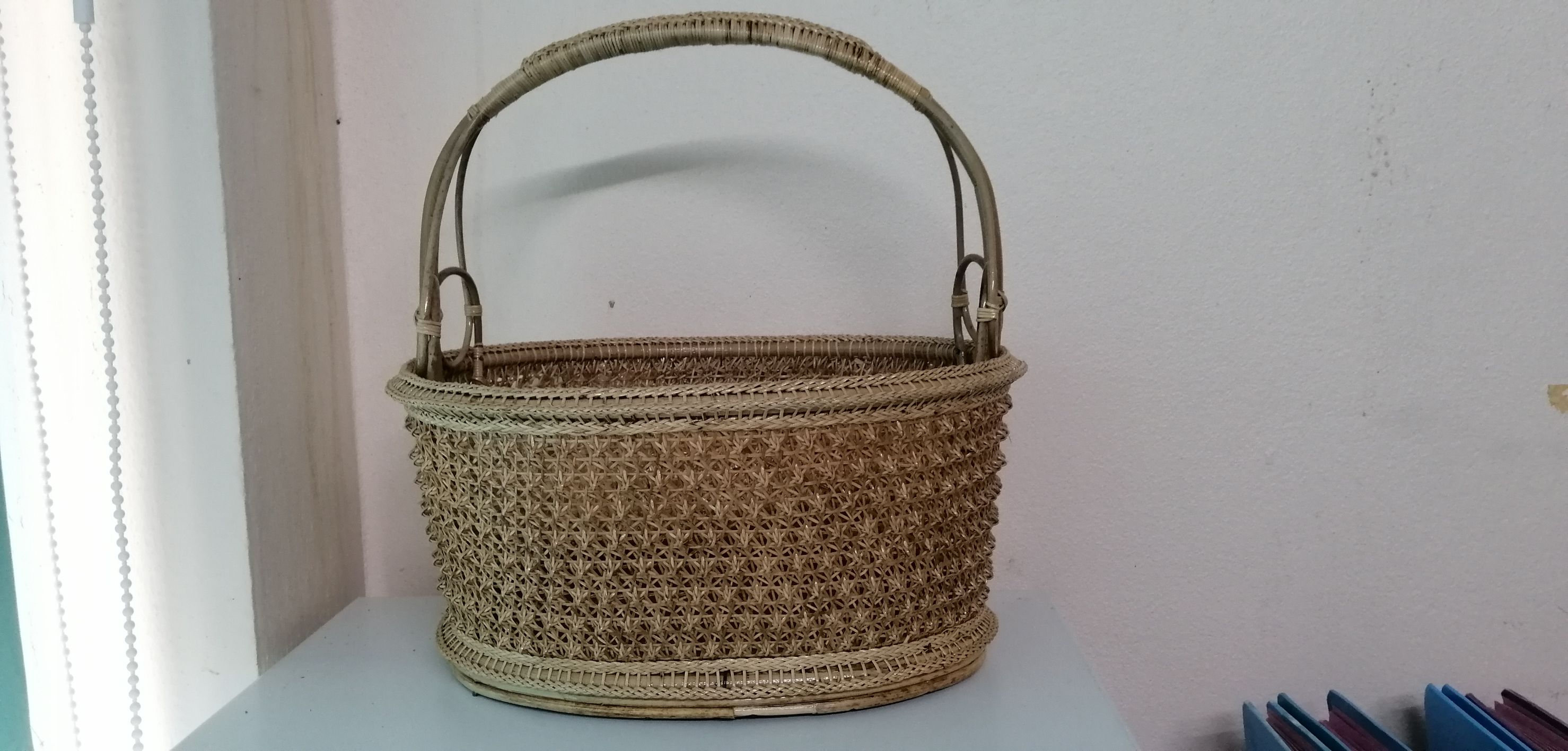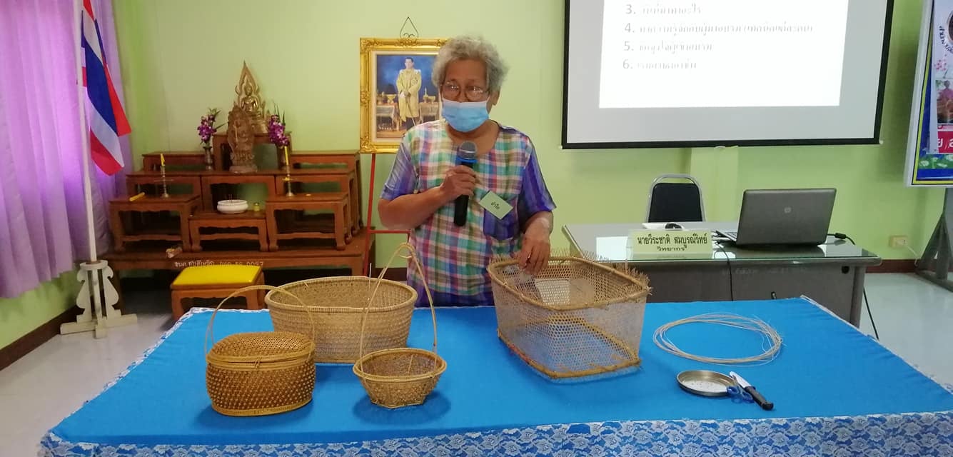 การทำจักสาน โดยเส้นหวาย ของชุมชนตำบลทับตีเหล็ก โดยปราชญ์ชาวบ้าน นางสาวลำใย ฉายศิริ