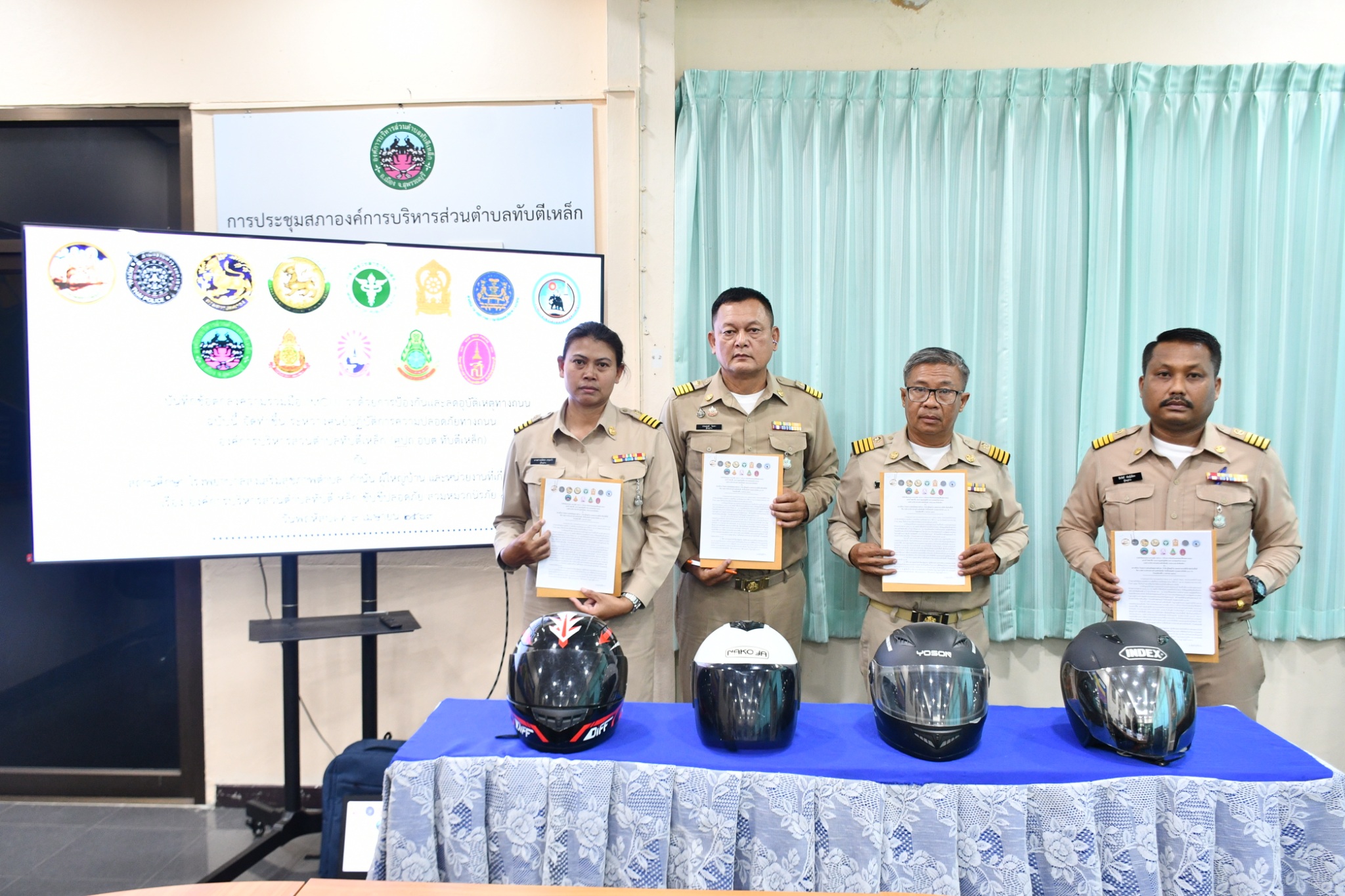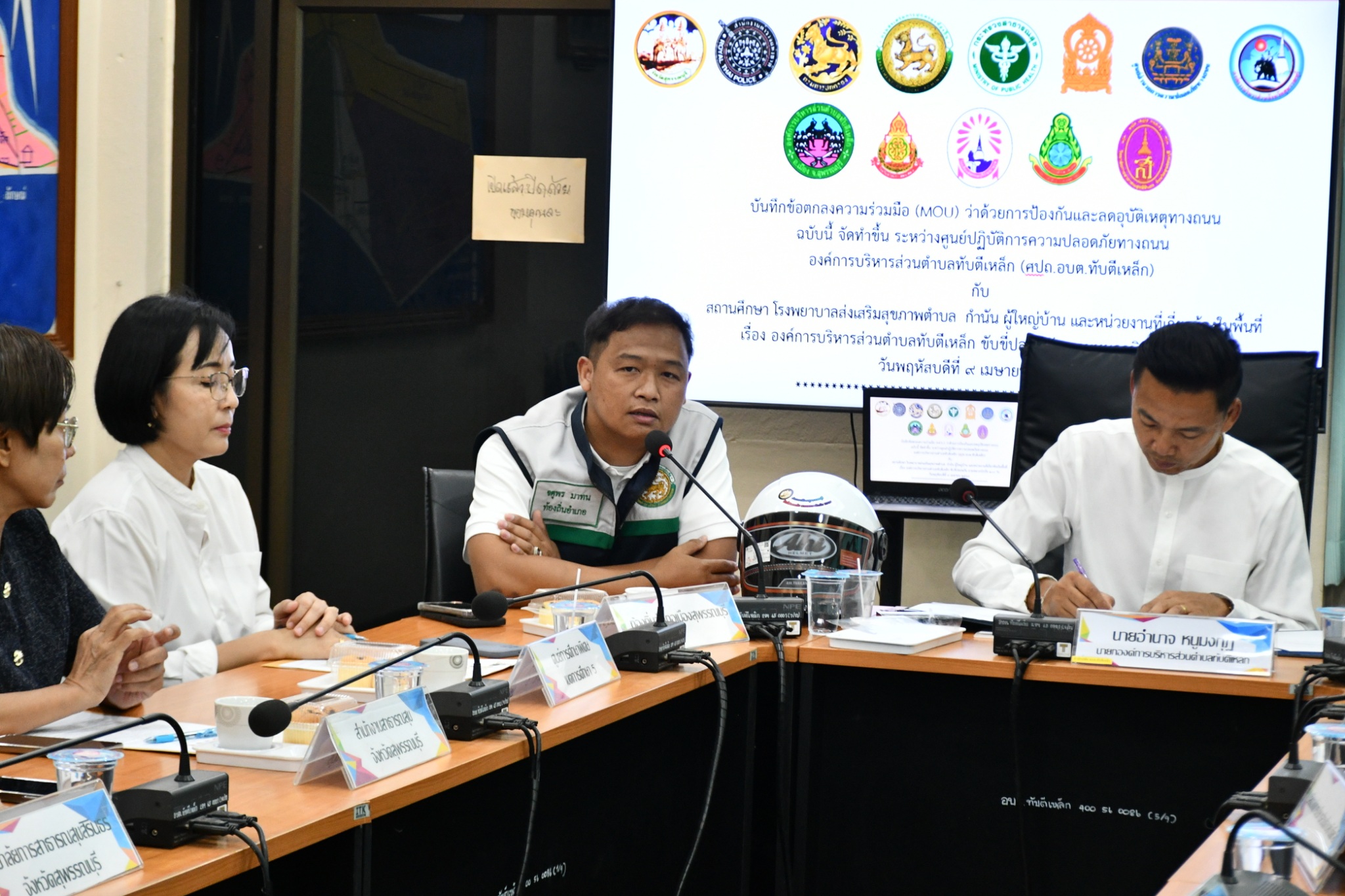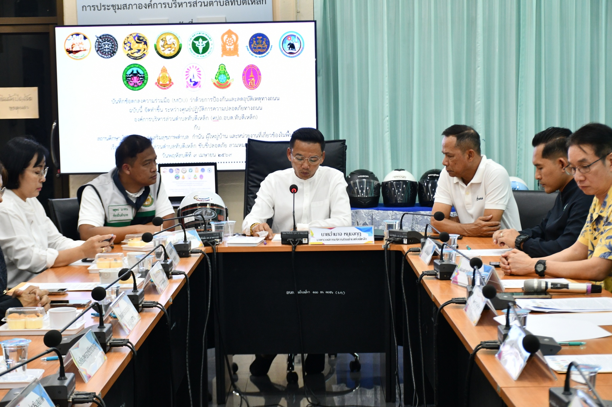 วันพฤหัสบดี ที่ 9 เมษายน 2569 องค์การบริหารส่วนตำบลทับตีเหล็ก นำโดย นายอำนาจ หนูมงกุฎ นายกองค์การบริหารส่วนตำบลทับตีเหล็ก พร้อมด้วย คณะผู้บริหาร ปลัดองค์การบริหารส่วนตำบลทับตีเหล็ก และหัวหน้าส่วนราชการ ได้จัดทำบันทึกข้อตกลงความร่วม (MOU) ว่าด้วยการป้องกันและลดอุบัติเหตุทางถนน โดยจัดทำขึ้น ระหว่างศูนย์ปฏิบัติการความปลอดภัยทางถนน องค์การบริหารส่วนตำบลทับตีเหล็ก (ศปถ. องค์การบริหารส่วนตำบลทับตีเหล็ก) กับ สถานศึกษา โรงพยาบาลส่งเสริมสุขภาพตำบล กำนัน ผู้ใหญ่บ้าน และหน่วยงานที่เกี่ยวข้องในพื้นที่ เรื่อง องค์การบริหารส่วนตำบลทับตีเหล็ก ขับขี่ปลอดภัย สวมหมวกนิรภัย 100 %