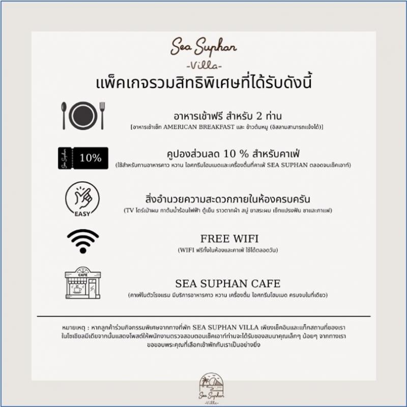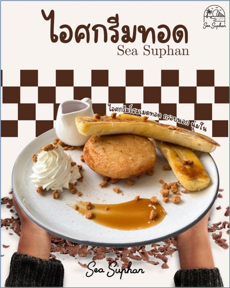 "ร้าน Sea Suphan มีที่พักคาเฟ่ครบจบในที่เดียว และมีห้องประชุมจัดสัมมนา ไอศกรีมคาเฟ่เหมาะสำหรับลูกค้าทุกวัย มีพื้นที่ให้เด็กๆได้เล่นสนุกกัน มีมุมต่างๆให้ทุกคนได้มาเปลี่ยนบรรยากาศ ถ่ายรูปและนั่งผ่อนคลาย นอกจากไอศกรีมแล้วยังมีอาหารจานเดียว สเต็ก ยำพร้อม ให้บริการอีกด้วยด้วย ร้านเปิดทุกวัน 10:00-20:00 Sea Suphan ไอศกรีมคาเฟ่ ได้รับป้ายรับรองมาตรฐานการสุขาภิบาลอาหาร “สะอาด ปลอดภัย ได้มาตรฐาน : SAN ขององค์การบริหารส่วนตำบลทับตีเหล็ก ยินดีต้อนรับทุกท่าน ร้าน Sea Suphan ที่อยู่ 88/8 หมู่ที่ 2 ตำบลทับตีเหล็ก อำเภอเมืองสุพรรณบุรี จังหวัดสุพรรณบุรี โทรศัพท์ 080-0870930