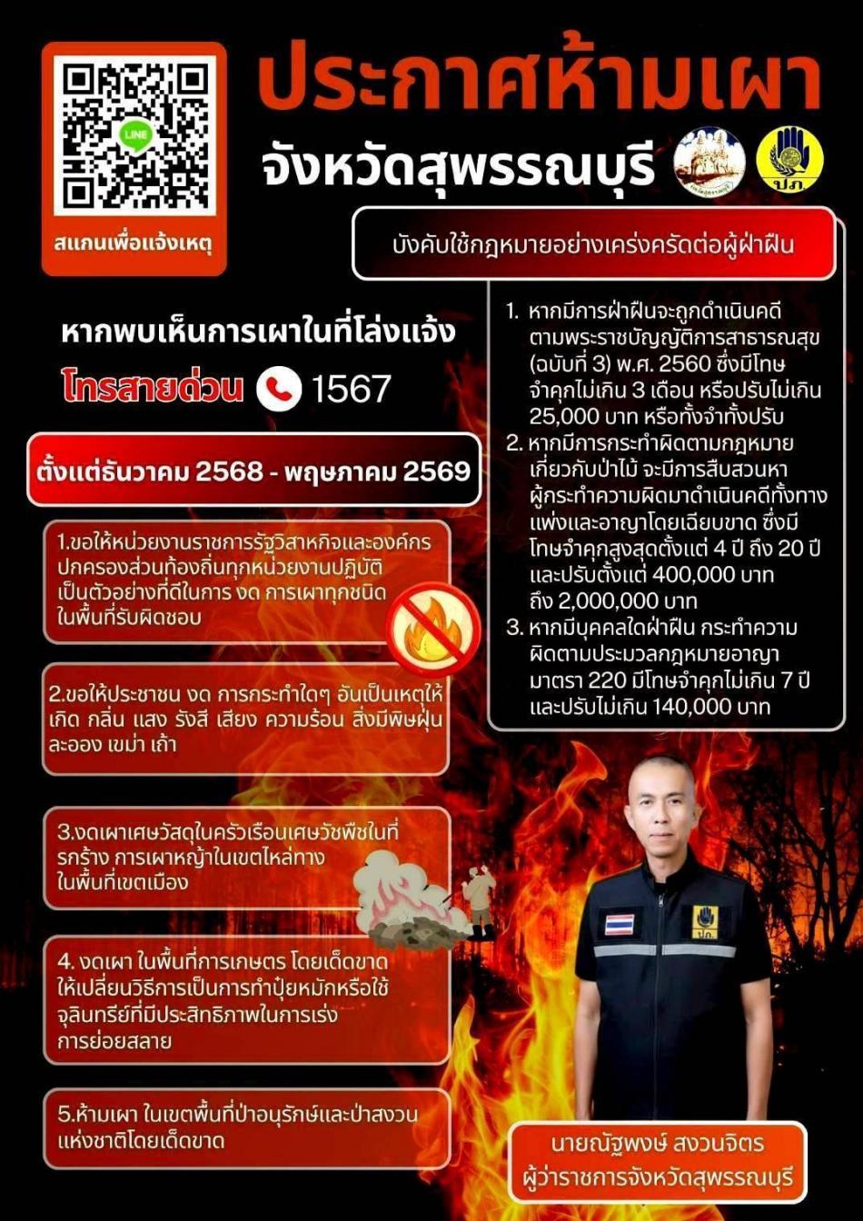 ประกาศห้ามเผาจังหวัดสุพรรณบุรี [23 มกราคม 2569]
