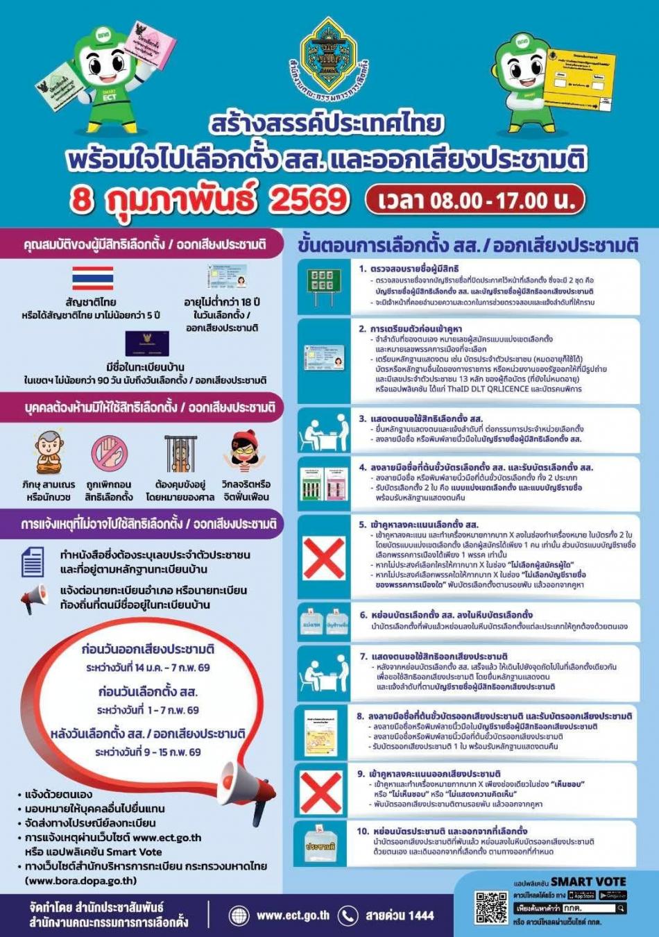 พร้อมใจไปเลือกตั้งและออกเสียงประชามติ 8 กุมภาพันธ์ 2569 เวลา 08.00 - 17.00น. [23 มกราคม 2569]