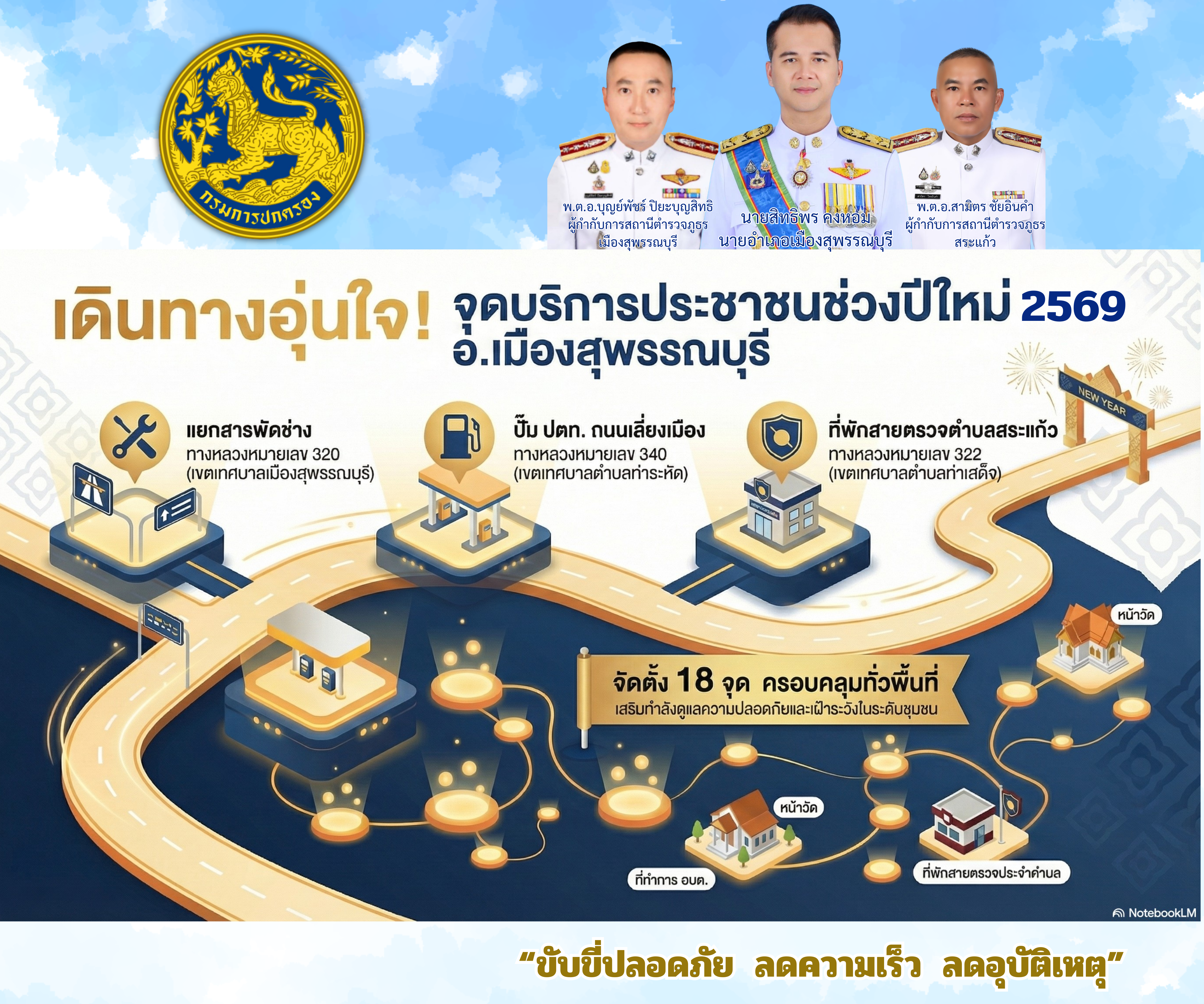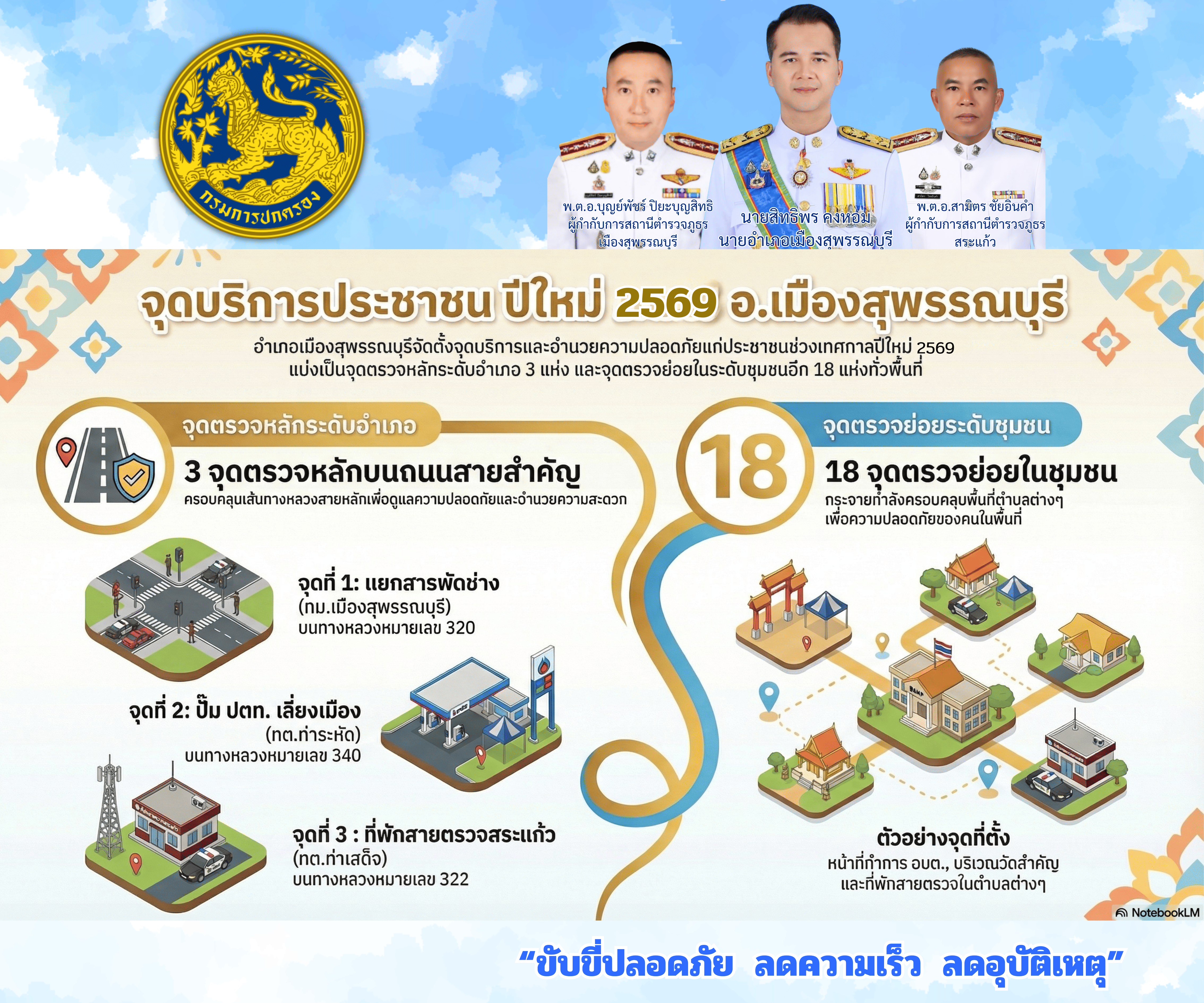 จุดบริการประชาชนช่วงปีใหม่ 2569 อำเภอเมืองจังหวัดสุพรรณบุรี